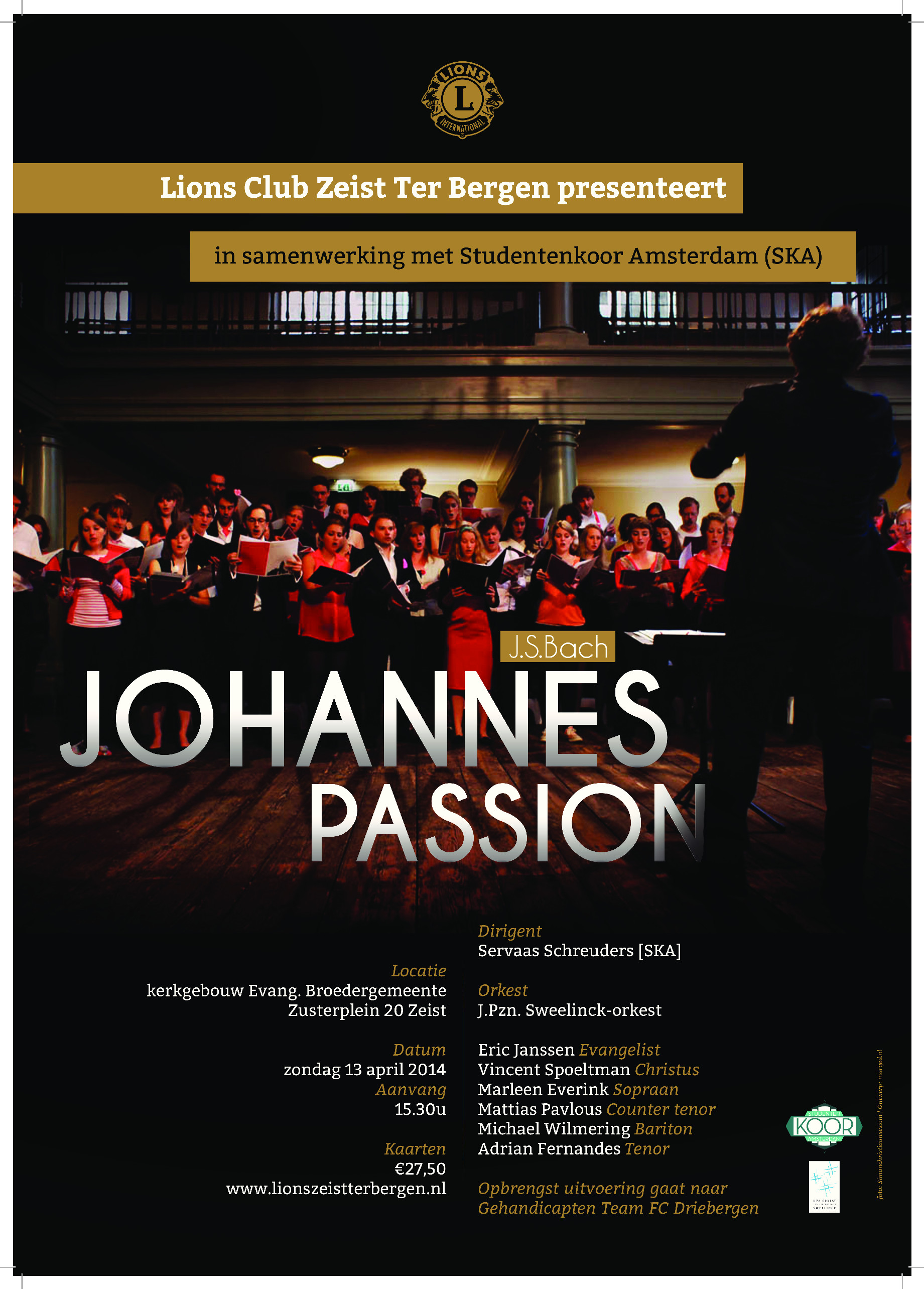13 April at 15:30 in the Evangelical Church of Zeist, Zusterplein 20, 3703 CB Zeist with the SKA, under the direction of Servaas Schreuders.