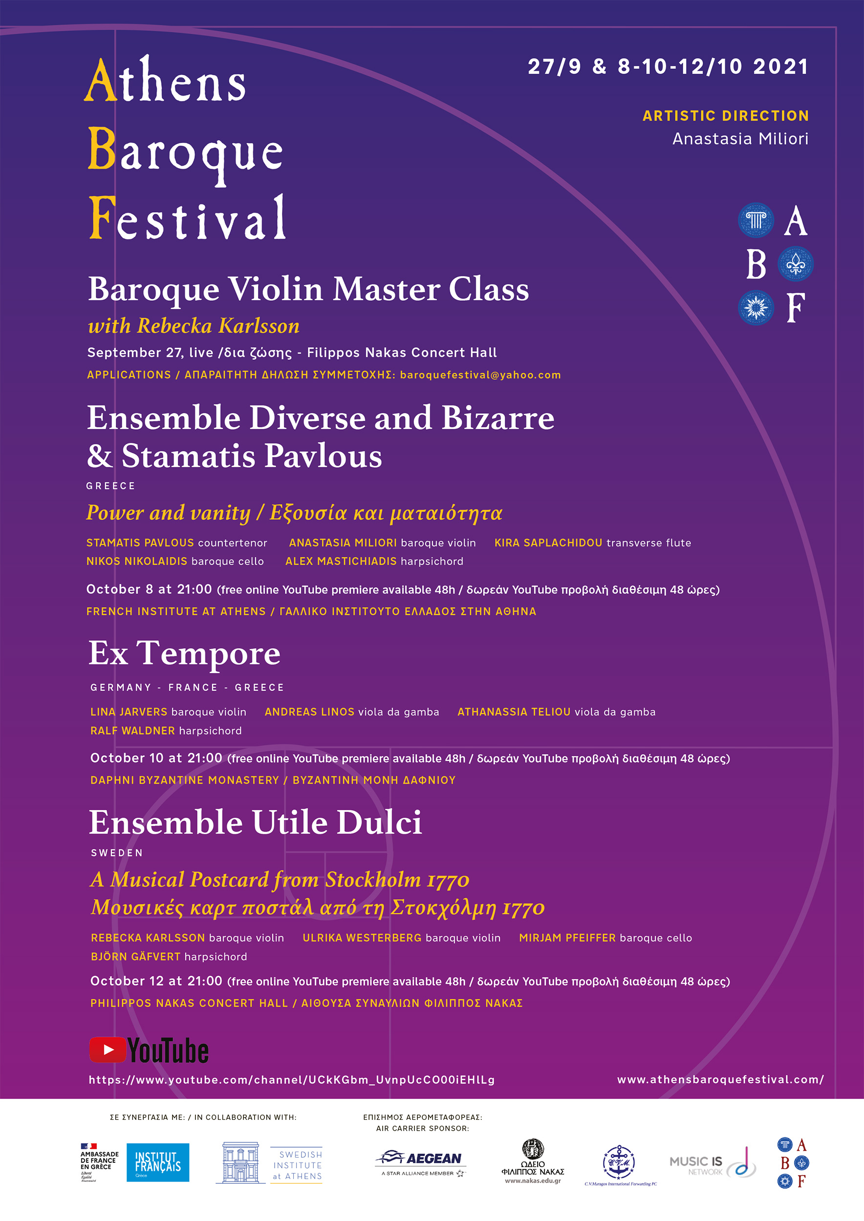 8 October 2021, 21:00. An online concert with Ensemble Diverse and Bizarre from the French Institute of Athens available here for free for 48hrs.